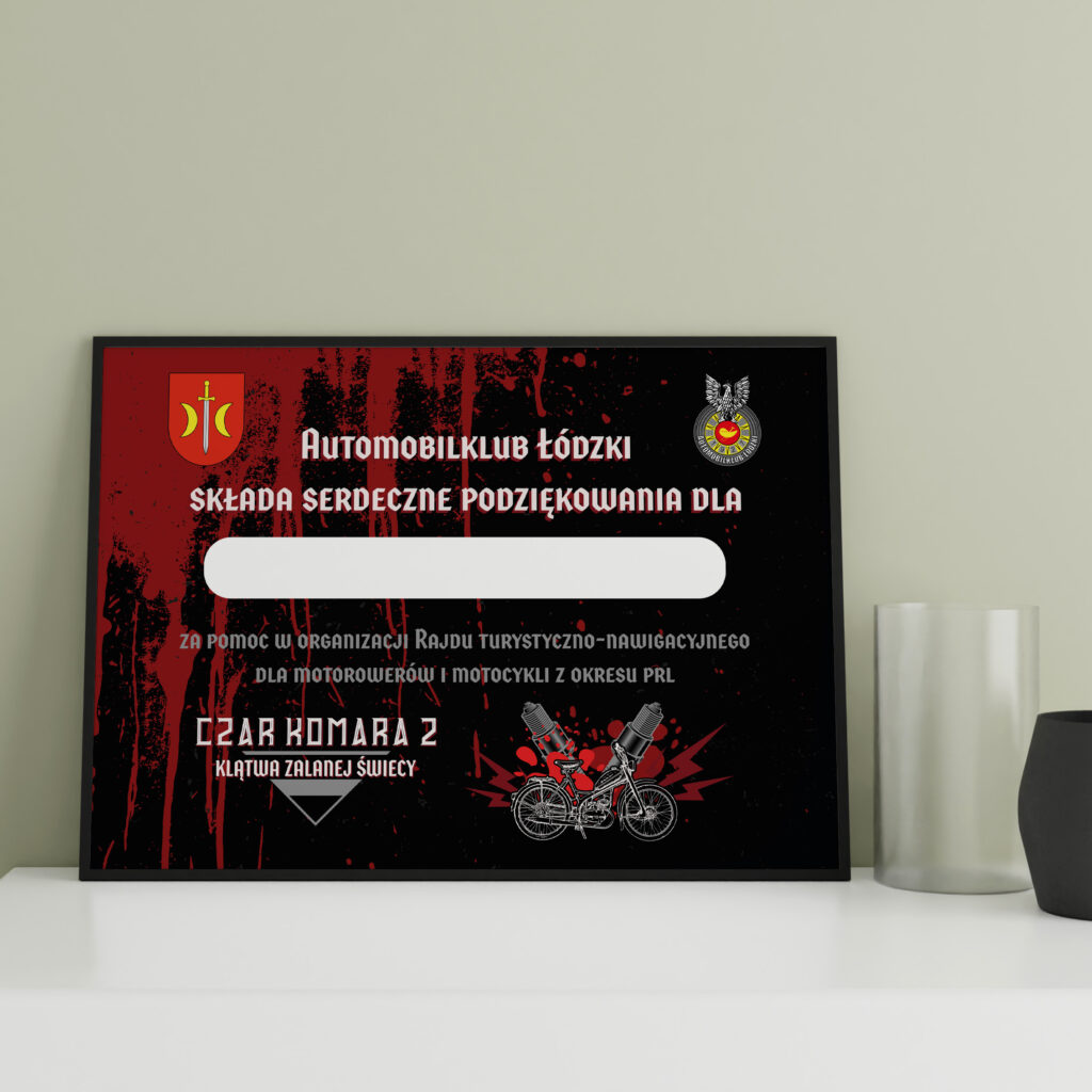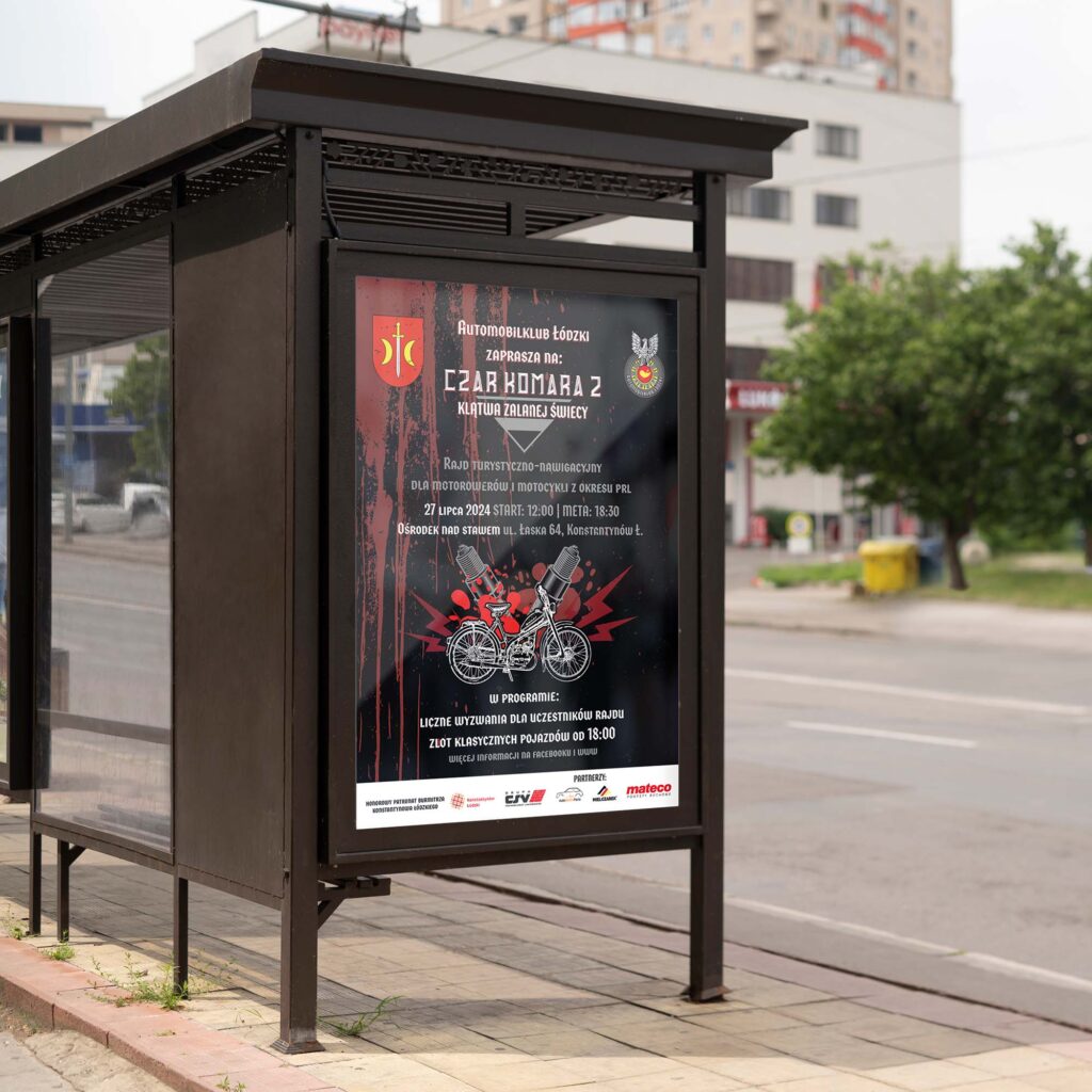 Projekt komunikacji wizualnej dla rajdu „Czar komara 2: klątwa zalanej świecy”. To rajd turystyczny przeznaczony wyłącznie dla dwusuwowych pojazdów koncepcji bloku wschodniego. Wydarzenie odbywa się w Konstantynowie Łódzkim i prowadzi uczestników przez ponad 100-kilometrową trasę po urokliwych drogach województwa łódzkiego. W rajdzie mogą uczestniczyć takie klasyczne pojazdy jak Motorynka, Komar, Romet, Jawa i inne podobne z okresu PRL.
