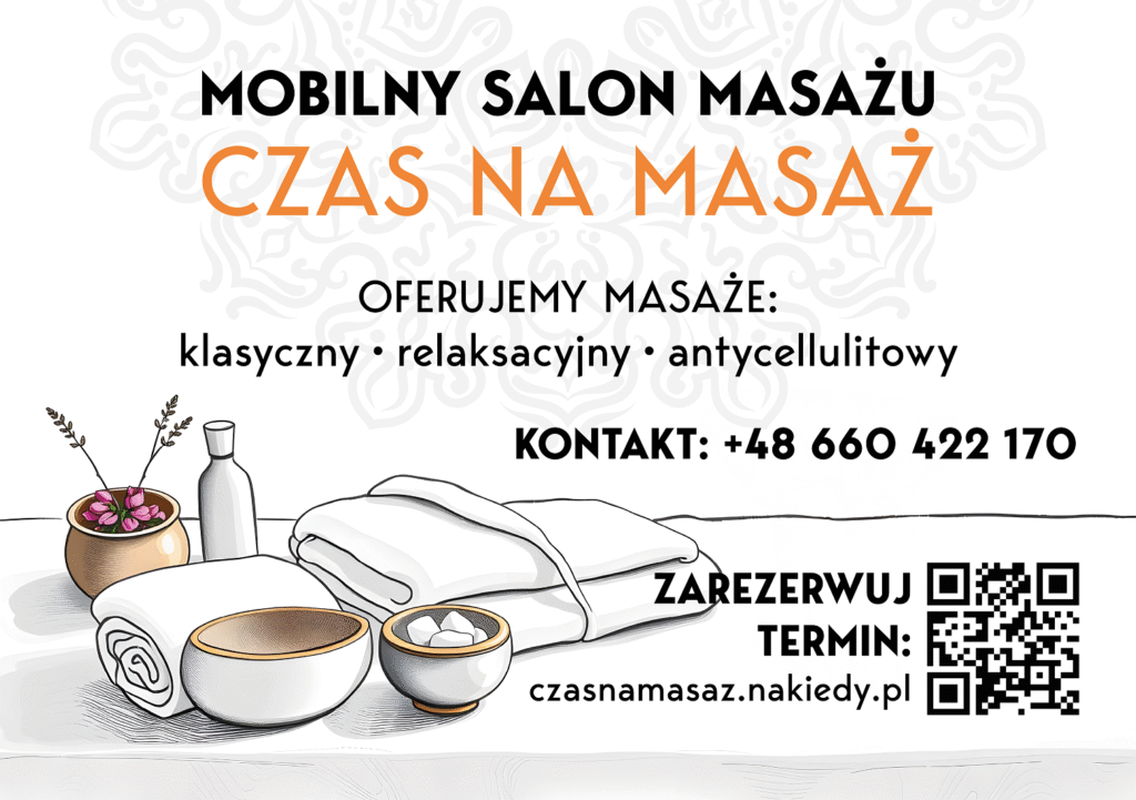 „Czas na masaż” to forma oferująca usługi mobilnego salonu masażu. Współpraca obejmowała projekt logo (na potrzeby strony internetowej oraz social mediów) a także naklejkę reklamową na szybę samochodową.