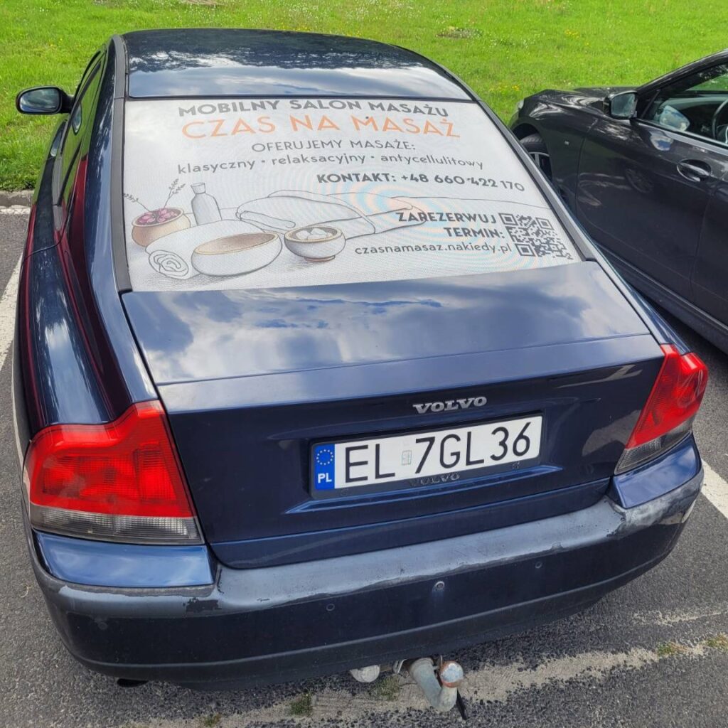 – projekt oraz realizacja reklamy na szybę samochodu z uwzględnieniem budowy charakterystycznej dla danego modelu (Adobe Photoshop, Adobe Illustrator)